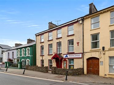 A 3 STOREY RETAIL COMMERCIAL BUILDING LOCATED IN THE PRIME RETAIL AREA OF NEW STREET WITHIN BANTRY TOWN CENTRE. Substantial town centre commercial premises with overhead accommodation on 2 floors, suitable as additional space for a business enterprise or alternatively to be used as a spacious residential accommodation unit. The building is a traditional stone built and masonry structure with an extension to the rear which benefits from a statement traditional shop front. The building enjoys over 256 sq. m. / 2,850 sq. ft. approximately of internal space, offers extensive street frontage with rear access and a small storage area to accommodate bins etc. The unit experiences high footfall with an extensive window display within the prime town centre trading area. The ground floor shop premises comprises 1,150 sq. ft. / 107 sq. m. approximately of space. This property traded for many years as a Pharmacy on New Street. The upper floors are ideal for use as a family home or staff accommodation or to support a business with storage areas. FEATURES •High profile retail commercial unit offered with vacant possession •Located in prime retail area of Bantry, a thriving retail and tourist town. •Prominent trading position adjacent to banks, credit union, shops and services. •High foot fall area within the town centre •Extensive street frontage & window display •Opportunity to convert upper floors to residential, subject to planning. SERVICES Connected to main town facilities. Viewing recommended. Notice: Please note we have not tested any apparatus, fixtures, fittings or services. Interested parties must undertake their own investigation into the working order of these items. All measurements, distances, boundary outlines and dates are approximate and photographs provided for guidance only.