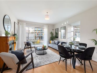 A superb two bed, third floor apartment which is well presented throughout and ideally located just off Mespil road in a small, beautifully finished block of just eight apartments. Primely positioned to the rear of Boojum on Mespil Road, adjacent to Baggot Street and the Mespil Hotel, in the heart of Dublin's fashionable Dublin 4 district. It is bright and spacious accommodation and it is very well finished throughout. It boasts all mod con's such as Neff integrated appliances, dimmer controlled lighting, video intercom to front door, G.F.C.H, room thermostat controlled heating. Both bedrooms are generous doubles.