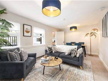 A two-bedroom townhouse in a highly sought after Dublin development. 1 Millbrook Village is an exquisite end of terrace townhouse in one of South County Dublin's most desirable locations. This house has recently been extensively upgraded by the current owner, comprising just under 700 sqft and is in turnkey condition throughout. This property is accessed off the main Milltown Road and is situated in a superb position being an end of terrace house in this private tranquil development. Upon entering this property you'll instantly notice the high-quality design and meticulous attention to detail throughout. The main living area is flooded in natural light and features a remote-control gas fire and bespoke built-in floating shelves and TV cabinet. Through to the recently fitted hand painted kitchen and dining area, you will find all the modern built-in appliances one could need with ample room for a large dining table and four chairs. Off the kitchen there is a WC and utility room plumbed for a washing machine. Leading from the kitchen accessed by three steps is a beautiful southwest facing private mature lawned garden with patio area, perfect for al fresco dining. The end of terrace location benefits from a generous side garden with a private access entrance. Moving upstairs, the sense of high quality and attention to detail continues. There's a bright, airy and spacious landing area which gives access to a family bathroom and two generous double bedrooms with newly fitted wardrobes. The attic is fully insulated and partially floored with access via Stira attic door. Additional features of the property include an alarm system with two security cameras, one parking space and access to the development's communal tennis court and gym.