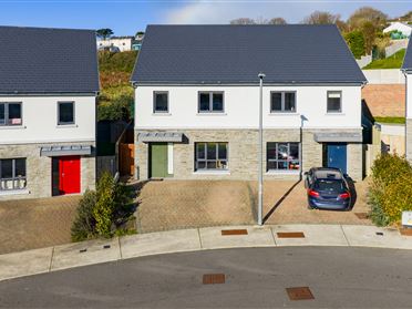 Entrance Hall-5.19m x 1.1m Access to living room, kitchen/dining room & guest w.c.. Stairs to overhead accommodation with understairs storage. Recessed lighting. Wooden floor. Living Room -4.78m x 3.6m Large feature window to front drive. T.V. point. Wooden floor. Guest W.C. -1.79m x 1.43m Fully fitted with w.c. & wash-hand basin. Ceramic tiled floor & sink surround. Kitchen/Dining Room -5.5m x 5.49m Fully fitted with presses & cupboards. Premium integrated appliances include fridge/freezer, electric oven, hob with overhead extractor, dishwasher & washing machine/dryer. Quartz worktop. Window & door to rear gardens. Recessed lighting. Wooden floor. Landing -4.46m x 2.38m Access to all bedrooms & bathroom. Attic hatch. Built in storage units. Bedroom 1 -2.98m x 2.39m Window to rear. Wooden floor. Radiator. Bedroom 2 -4.19m x 2.99m Window to rear. Wooden floor. Radiator. Family Bathroom -2.98m x 2.10m Fully fitted with w.c, wash-hand basin with built in vanity unit, bathtub & thermostatically controlled shower with both rainfall & telephone shower attachments. Ceramic tiled walls & floor. Radiator. Master Bedroom -4.92m x 2.79m Two windows to front. Built in robes. Wooden floor. Access to en-suite. Radiator. En-Suite (2.76m x 0.97m) Fully fitted with w.c., wash-hand basin & thermostatically controlled shower with both rainfall & telephone shower attachments. Ceramic tiled walls & floor. Radiator. Services: -Mains services. -Air-to-water heating system (underfloor heating on the ground floor.) -HRV system.
