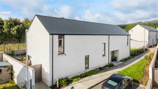 No. 17 Sika Woods is a truly exceptional A-rated detached family home, ideally positioned on a desirable corner site within this exclusive development of just 47 homes, located approximately 1km from the picturesque village of Enniskerry. Constructed in 2022 by Winterbrook and designed by the award-winning architects Aughey O'Flaherty, the property extends to approximately 193 sq. m and represents a seamless fusion of contemporary architecture, energy efficiency, and refined interior design. From the moment you enter, the home immediately impresses with its striking double-height ceiling and sense of light, space, and volume. The well-considered layout centres around a spectacular open-plan kitchen, dining, and living space, anchored by a stunning bespoke media wall and extensive fitted cabinetry. A full wall of triple-glazed windows and double doors opens directly onto the south-facing patio and rear garden, creating a seamless connection between indoor and outdoor living and allowing natural light to flood the space throughout the day. The living area is both elegant and inviting, designed as the true heart of the home, with carefully curated lighting and a calm, contemporary aesthetic throughout. Every finish has been meticulously selected, including Kahrs of Sweden 18mm three-layer wood flooring with a broadleaf hardwax treatment running throughout the home, including the ground floor guest bedroom, with the exception of all bathrooms and all three first-floor bedrooms. Foscarini, Louis Poulsen, HAY, and &Tradition designer light fittings are featured throughout, adding warmth, texture, and a refined design edge to each space. The kitchen is fitted to an exceptional standard, featuring high-end integrated appliances including a Siemens twin full-length side-by-side fridge and freezer and NEFF eye-level oven and microwave, all seamlessly incorporated into the bespoke cabinetry. A separate, well-appointed utility room provides excellent additional storage and functionality and is fitted with a Bosch i-DOS automatic dispensing washing machine and Bosch heat pump dryer. The ground floor further comprises a stylish guest bathroom and a generous double bedroom with direct access to the south-facing patio and garden, offering excellent flexibility for guests, home office use, or multi-generational living. Upstairs, a galleried landing overlooks the main living space below, enhancing the sense of light and architectural drama. The first floor accommodation includes a superb principal bedroom with en-suite, additional well-proportioned bedrooms, and further en-suite facilities, all finished to a high standard. A private balcony extends from the upper level, providing a quiet outdoor retreat and further enhancing the home's connection to its landscaped setting. A dedicated TV / gaming room provides an ideal additional living space, while a bespoke work-from-home hot desk area has been thoughtfully designed to comfortably accommodate two people. Externally, the property benefits from a beautifully positioned south-facing rear garden, ideal for outdoor dining and family enjoyment, along with the advantages of a corner site offering additional space and privacy. A Zappi 7kW electric car charger is also installed, and the south-facing roof offers excellent future-proofing potential for solar panel installation. The development itself is highly regarded for its strong sense of community and family-friendly environment, with numerous young families creating a vibrant and welcoming atmosphere. Excellent local schools including Powerscourt National School and Curtlestown National School are within easy reach, with St. Gerard's also highly regarded in the area. Energy efficiency is a standout feature, with the home benefitting from an A-rating, air-to-water heating system, mechanical heat recovery ventilation, triple glazing, and a fibre broadband connection. No. 17 Sika Woods represents a rare opportunity to acquire a meticulously finished, turnkey residence in one of Enniskerry's most sought-after developments, combining architectural excellence, modern efficiency, and exceptional family living in a truly enviable setting. Key Features: • Constructed circa 2022 by Winterbrook, designed by Aughey O'Flaherty Architects • Prime corner site within an exclusive development of just 47 homes • Stunning double-height living space creating exceptional light and volume • Impressive open-plan kitchen / dining / living area with bespoke media wall • Full wall of triple-glazed windows and doors opening to the garden • West-facing rear garden with seamless indooroutdoor flow • High-quality bespoke cabinetry and carefully curated lighting design throughout • Flexible layout including ground floor bedroom, utility room & guest bathroom • Galleried landing with balcony and multiple en-suite bedrooms • A-rated energy efficient home with air-to-water heat pump & MHRV system • Highly family-friendly development close to excellent schools