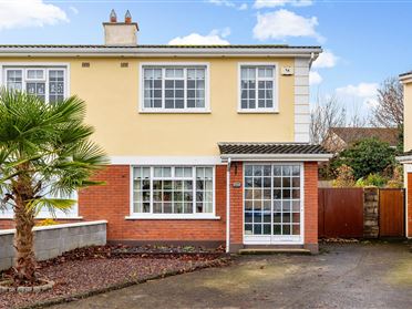DOWNSTAIRS ACCOMMODATION OPEN PLAN KITCHEN 2.96M X 2.32M, DINING / LIVING ROOM AREA: 5.42M X 4.50M Recessed lights, quality hand-painted kitchen with wall and base units, splashback area, stainless steel sink, area fully plumbed, work tops, dishwasher, fridge freezer, 4 plate gas hob, oven, chrome extractor fan, tiles, French doors leading to the garden area, and double doors leading to the sitting room. Removal of internal kitchen wall (Structural & Civil Chartered Engineer provided professional services. Refer to compliance certificate, which demonstrates design works in compliance with building regulations). New larger kitchen window to the rear garden. New bespoke vertical radiators. New ceiling down lighting and additional electrical sockets throughout the dining / living room. UTILITY ROOM: 2.33M X 1.56M Light fitting, gas boiler only 4 years old fully serviced, worktop, area fully plumbed, washing machine, tumble dryer, retractable laundry line, tiles on the floor, back door leading to the back garden. SITTING ROOM:4.70M X 3.19M Coving, light fitting, feature fireplace with an open fire piped for gas but can easily be changed to a wood burning stove, wooden floor, t.v. point, double doors connecting to the kitchen/dining/living room area. DOWNSTAIRS BEDROOM/OFFICE/PLAYROOM:4.56M X 2.30M Light fitting, wooden floor. HALLWAY:4.46M X 1.995M Coving, light fitting, new composite front door, new tiles in hallway, new carpet on stairwell, new alarm panel. GUEST WC: Light fitting, W.C., W.H.B., floor tiling. New sanitary ware. New floor tiling. New light fittings. New extractor fans. UPSTAIRS ACCOMMODATION LANDING: Light fitting, hot press with immersion and shelving, carpet, pull-down attic stairs, attic access. BEDROOM 1:3.91M X 1.72M Light fitting, fitted wardrobes, wooden floor, T.V and telephone point. NEW REMODELLED ENSUITE: 2.56M X 1.07M Light fitting, wall tiling, floor tiling, W.C., W.H.B., mirror, power shower with a glass door. New sanitary ware. New wall and floor tiling. New back lit wall mirrors. New light fittings. New extractor fans. BEDROOM 2:3.57M X 2.60M Light fitting, fitted wardrobes, wooden floor. BEDROOM 3:2.48M X 2.71M Light fitting, fitted wardrobes, vanity unit with a mirror, wooden floor. BEDROOM 4:2.90M X 2.14M Light fitting, fitted wardrobes, wooden floor. NEW REMODELLED BATHROOM (WITH A WINDOW):1.90M X 1.68M Light fitting, wall tiling, floor tiling, W.C., W.H.B., heated towel rail, mirror, `Triton T90sr` electric shower over bath, glass shower door. New sanitary ware. New wall and floor tiling. New backlit wall mirrors. New light fittings. New extractor fans. FEATURES INTERNAL New composite front door. High speed broad band availability. New internal doors, architrave, skirting and ironmongery throughout house. New solid timber floors in two reception rooms. New floor tiling in hall, kitchen, and utility rooms. New flooring and wardrobes in bedrooms. New electrical sockets and switches throughout house. New pure wool carpet on stairs and landing. New house alarm system. New light fittings throughout house. Professional house painting with `Colourtrend` paints (Celbridge). All carpets included in sale. All light fittings included in sale. All kitchen electrical appliances included in sale as per kitchen description as well as the washing machine and tumble dryer in the utility room. Superb family/starter home/investment property. Massive potential. Utility room. 4 years old `high efficiency (condensing) gas boiler. Downstairs bedroom/playroom/office. Potential to build up and over the downstairs bedroom in time if more space required subject of course to the relevant planning permission. Extension to the rear potential due to the size of the garden subject of course to the relevant planning permission. Attic conversion potential. Site potential subject to the relevant planning permission to the side of the property if playroom was removed. FEATURES EXTERNAL Garden dug up, rotavated, levelled and seeded. Garden brick walls restored and piers capped. New external gutters, fascias, soffits, and down piping. New side gate. New external tap. New PVC double glazed windows. New PVC facia & soffit. Maintenance free exterior. Outside lights. Outside tap. Beautiful back gardens. Side gate with a wide side entrance. Property located in a quiet cul de sac. Property overlooks a stunning and exceptionally well-maintained green area. SQUARE FOOTAGE:C. 1,339 sq ft/ C.124.41sqft HOW OLD IS THE PROPERTY:Built in C. 2001 BACK GARDEN SIZE:Large corner site with a generously sized back garden. Lots of building potential, subject of course to the relevant planning permission. GARDEN ORIENTATION: This home has an east west aspect, with side garden facing south. BER NUMBER:118931229 BER RATING:B2 - 120.16 kWh/m²/yr with an A3 potential as per BER report. BER B2 rating due to new insulation works: New double-glazed & high security doors and windows throughout the house. New insulation in the kitchen external wall at the rear of house. New insulation in reception room, external front and side walls. New insulation in lean-to roof kitchen, utility, and reception room. New attic insulation. CO2 EMISSIONS INDICATOR:21.3kg CO2/m2/yr SERVICES:Mains water, mains sewerage. HEATING SYSTEM:Natural gas-fired central heating and solid fuel Stove DISCLAIMER. All information provided by the listing agent/broker is deemed reliable but is not guaranteed and should be independently verified. No warranties or representations are made of any kind. Notice Please note we have not tested any apparatus, fixtures, fittings, or services. Interested parties must undertake their own investigation into the working order of these items. All measurements are approximate and photographs provided for guidance only.