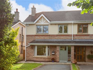 Entrance Hall Solid Oak wood flooring, recessed lighting, carpeted stairs to landing, smoke alarm, alarm panel, under stair storage, WC Living Room Solid Oak wood flooring, walk in bay window and feature port hole window, gas fire with Marble surround, polished black granite insert & hearth, recessed lighting, double doors to hallway & family room. Family Room Solid Oak wood flooring, feature gas fire with polished Sandstone surround, black Granite insert and hearth, bespoke shelving, sliding door to rear garden. Kitchen Tiled flooring, bespoke ‘Newcastle Design’ handpainted kitchen, feature curved island unit, polished stone countertops, bespoke wall and floor based storage units, ‘Falcon’ range style cooker with electric ovens and 5 ring gas hob, utility room off. Sunroom Tiled Floors, ample glazing with 2x double doors leading to private rear garden. Utility Room Tiled flooring, wall and floor based storage units, stainless steel sink, side access door. Downstairs WC Tiled floor, WC, pedestal wash hand basin, extractor fan, chrome heated towel rail. Landing Carpeted flooring, 1 x Velux window, recessed lighting, “Stira” stairs attic access, hot press off. Bedroom 1 Carpeted flooring, built-in wardrobes, additional walk-in wardrobe, en suite off, views overlooking amenity green. En Suite Tiled flooring, fully tiled walls, WC, wash hand basin, recessed lighting, fully tiled shower unit with glass panelled doors, mains power shower, chrome heated towel rail, exterior window. Bedroom 2 Solid wood flooring, built-in wardrobe, en suite off, views overlooking amenity green. En Suite 2 Tiled flooring, WC, wash hand basin, fully tiled shower unit with glass panelled doors, mains power shower, recessed lighting, chrome heated towel rail, exterior window. Bedroom 3 Semi solid wood flooring, built-in wardrobes, views of private rear garden. Bedroom 4 Semi solid wood flooring, built-in wardrobes, views of private rear garden. Bedroom 5 Solid wood flooring, built-in wardrobes, views of private rear garden. Family Bathroom Tiled flooring, fully tiled shower cubicle with mains power shower, separate bath with tiled surround, telephone shower, WC, wash hand basin, recessed lighting. Outside Rear Private and mature garden oasis, wrap around Granite patio, grass lawn and gravel beds, timber shed featuring power and lighting, mature trees and shrubbery.