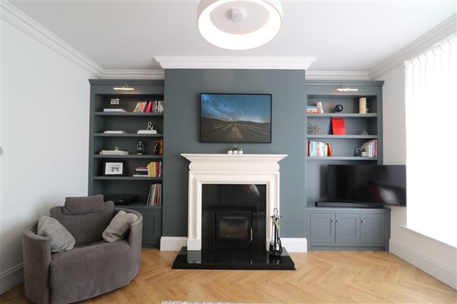 Entrance Hall: 4.87 m x 3.80 m Spacious and light filled entrance hall with a porcelain tiled flooring, alarm panel and understair storage. Guest wc: 2.10 m x 1.95 m Part tiled with whb, wc, heated towel rail and a tiled floor. Reception : 3.79 m x 4.71 m Overlooking the front garden with herringbone “Berry Alloc” laminate wood flooring, built in dimplex electric fire with double doors providing access to kitchen. Formal Living Room: 3.89 m x 4.75 m Spacious and elegantly styled living room overlooking the front garden with a feature limestone fireplace with an airtight wood burning stove and a bespoke built in cabinetry with a herringbone laminate wood floor and feature cornicing. Kitchen / Dining Room: 7.75 m x 6.21 m Large open plan kitchen flooded with natural light over looking the rear garden with a feature island and upgraded black quartz worktops. This contemporary kitchen with an F&B “all white” painted hardwood kitchen, soft close cabinets, quartz worktops, recessed spot lights, integrated AEG appliances and a porcelain tiled floor. Provides access to utility. Double doors providing access to the rear garden. Utility: 2.14 m x 3.91 m With storage presses, a sunken sink, quartz worktop, laundry appliances, a porcelain tiled floor and provides access to the plant room and rear garden. First Floor Master Bedroom: 3.92 m x 4.97 m Light filled, spacious master bedroom overlooking the front garden with built in wardrobes, a Kronotex laminate floor and an en-suite. En-suite 1.62 m x 2.72 m: Fully tiled with wc, whb and shower cubicle with a pressurised shower and underfloor heating. Bedroom 2: 3.99 m x 3.93 m Double bedroom overlooking the rear garden with built in wardrobes and a Kronotex laminate floor and an en-suite. En-suite: 1.26 m x 2.99 m Fully tiled with wc, whb and tiled flooring. Bedroom 3: 3.49 m x 3.67 m Double bedroom overlooking the front garden with a built in wardrobes and a Kronotex laminate floor. Bedroom 4: 3.69 m x 3.22 m Large bedroom overlooking the rear garden with a built in wardrobes and a Kronotex laminate floor. Family Bathroom 3.80 m x 2.00 m Fully tiled bathroom with white 4 piece suite including wc, whb, bath and double shower cubicle. Second Floor Bedroom 5: 5.69 m x 4.81 m Large bedroom with a Kronotex laminate floor and an en-suite and separate storage. En-suite 3..74 m x 1.94 m Fully tiled with wc, whb and a shower cubicle. Exterior This exterior space surrounding this beautiful home is meticulously landscaped and maintained. Accessed via custom designed sliding electric gates, freshly laid Connaught gold stone adorns the front garden and is bordered by raised flower beds. The rear garden has been delightfully landscaped with Spanish style raised white walled flower beds, garden lights and a newly paved patio area with porcelain tiles making this dreamy garden the perfect spot for al fresco dining or to enjoy your morning coffee. Office and Block built shed: 5.09 m x 3.45 m Light filled home office built in 2022 with electric heating and laminate wood flooring. Adjoining block built shed with power and ample storage. Extra metal extra to side of house, currently used to store bikes and sporting equipment.