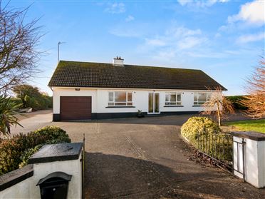 Entrance Hall with tiled floor Living room with tiled floor and solid fuel stove Kitchen/ diner with range of sleek fitted units, tiled floor Sunroom with patio door to garden Bedroom 1. Bedroom 2. Bedroom 3. Bathroom with heated towel rail Integrated garage which dual access OUTSIDE: Ample off street parking to the front, large south facing garden to the rear, with patio area and garden sheds together with vegetable plot SERVICES: All main services and O.F.C.H. BER: C3 No 106551500 EIRCODE: Y34VX67 VIEWING: By prior appointment