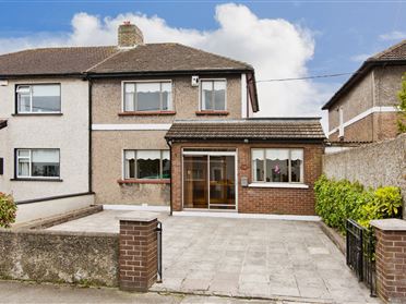 Entrance Hall - 1.51m x 1.50m A welcoming entrance hall features wall-mounted storage and hardwood timber flooring, flowing seamlessly into a bright and spacious living/dining room. Living/Dining Room - 6.42m x 4.10m Window to the front & rear aspect, double height ceilings, feature fireplace with inset gas fire, LED downlights, hardwood timber flooring, stairs to the first flooring landing and leading to the well appointed kitchen area. Kitchen - 2.98m x 1.71m Fitted with matching base/wall units with ample worktop space, tiled splashback, built-in electric oven, four burner gas hob with extractor above, integrated fridge/freezer, wall-mounted breakfast bar, polished porcelain tiled flooring and rear door to the courtyard garden. Landing - 2.14mx 0.90m Rear facing window with electric blind, leading to both bedrooms and the family bathroom. Bedroom 1 - 4.25m x 2.70m Sizeable double bedroom with windows to the front aspect, built-in sliderobes wardrobe, wall-mounted radiator and carpeted floor coverings. Bedroom 2 - 1.64m x 3.57m Good-sized single bedroom with opening casement window to the rear aspect, wall-mounted radiator, built-in hot-press with hot-water tank and carpeted floor coverings. Bathroom - 1.40m x 2.58m Opaque window to the rear aspect, fitted with a deep fill bath with Triton electric shower above, Crittall glass shower screen, feature vanity unit with inset sink and mixer-tap, a WC and tiled-floor-ceiling. Utility Room - 0.80m x 1.10m Plumbing for washing machine and wall-mounted gas fired boiler. Outside - To the rear, the property boasts a beautifully appointed courtyard garden, finished with paving slabs to ensure minimal maintenance. A generous covered area provides an ideal space for bicycle storage and leads seamlessly to a well-equipped utility room, complete with plumbing for a washing machine and a gas-fired boiler. The property further benefits from on-street resident permit parking.