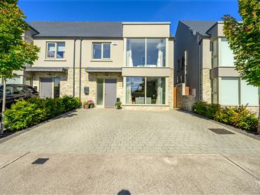 The second floor hosts four beautifully designed double bedrooms, three with luxurious en-suites, alongside a designer family bathroom. Every bedroom features custom-fitted wardrobes and generous dimensions, ensuring comfort and style throughout. Additional highlights include a large garage, plant room, and superior internal finishes, including solid oak herringbone flooring, granite countertops, and AEG kitchen appliances. Highly energy-efficient, the home boasts an A2 BER rating, underfloor heating via an air-to-water heat pump, and triple-glazed windows throughout.