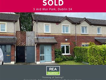NEW TO THE MARKET REA MURPHY brings No. 44 Ashton to the open market for immediate sale. The property has been extended to deliver excellent additional living space and all associated planning is in order. ASHTON is a very established development of 47 detached homes only. Built in the early 1990s, the development has a housing ratio of only 5.50 houses per acre, and incorporates large open spaces which are very well maintained and dotted with maturing trees and shrubs. No 44 Ashton is located on a cul-de-sac of only 5 homes. The Residence fronts onto the large communal green area and has its own off-street parking space. This superb family home has been extended to the rear, increasing the living area substantially. The 4 Bedrooms at 1st Floor are serviced with a Bathroom and En Suite. Downstairs, the living area comprises of the original Lounge, the Home Office replaces the original dining room, the 2nd Reception Room is an ideal TV Lounge / Games room and the open-plan Kitchen/Dining/Living area is a real gem awash with natural light, expansive range of Kitchen units and direct access onto the rear gardens. Low maintenance and improved insulation are two very practical benefits of owning No. 44 Ashton - the property has a B3 energy rating and between the cobble lock finish to the external spaces plus the brick finish to the external walls, ongoing maintenance costs will be minimal. ASHTON is located within walking distance of all amenities Blessington Town has to offer. Blessington is recognised as a very desirable residential location serving the employment centres of Naas, North Kildare, Citywest Business campus and South County Dublin. The new Owner will enjoy a full range of community services and a tangible focus on wellbeing and enjoying the great outdoors. An ideal location for quality family life and only a short drive from Dublin City and Naas Town. INSPECTION IS HIGHLY RECOMMENDED. PRE-CHRISTMAS VIEWINGS AVAILABLE ON REQUEST. ACCOMMODATION: ENTRANCE HALL: With guest W.C. LOUNGE: Bay window. Open fireplace with marble surround. Original dado rails in place. HOME-OFFICE SPACE: Connected to the Lounge and Kitchen. Easily sectioned off for more privacy. TV LOUNGE / GAMES ROOM: A valuable additional space for the larger family. OPEN PLAN KITCHEN/DINING/LIVING AREA: A fantastic space derived from the significant extension. Awash with natural light. Direct access to the rear garden. Expansive range of Kitchen units. Large Kitchen island with associated seating space. Open-plan dining and living space. UTILITY: Additional storage. Fully plumbed in. Door to side access. 1st Floor: MASTER BEDROOM: Fitted wardrobes. En Suite. EN SUITE: Shower cubicle with electric shower. Toilet WHB. 3 ADDITIONAL BEDROOMS; 2 Bedrooms have fitted robes. BATHROOM: The Bathroom is finished in classic Black and White tiling. Incorprates Bath with over-bath shower, WHB and Toilet. OUTSIDE: Off-street parking to the front with Cobblelock finish. 2 pedestrian access ways to the rear garden. Rear garden with Cobblelock finish steel garden shed is included in the sale.