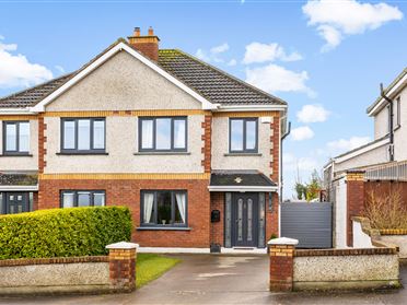 Kelly Hudson Properties proudly present this 3 bedroom semi detached property to the market for sale. This property comes to the market in good clean and tidy condition having been well maintained by its current owners and offers bright airy and spacious living accommodation. The property comprises of an entrance hallway, kitchen/dining, utility room and sitting room all downstairs and upstairs consists of the family bathroom and three good sized bedrooms, the main of which is ensuite. The property benefits from side gate access to the large rear garden. There is ample parking to the front of the property also. Situated on the outskirts of Newbridge town, the town centre is within walking distance where a host of amenities can be found. These include Newbridge Silverware, Whitewater shopping centre, supermarkets, shops, Banks, Post Office, restaurants, bars, train station and schools. Access to the motorway is less than c.1km away making this property an ideal location for any commuter. Expect to be impressed with this house. Viewing is highly recommended strictly by prior appointment only. ACCOMMODATION: Entrance Hallway: Tiled flooring, light fitting, alarm point, radiator Kitchen/Dining: Tiled flooring, light fittings, fully fitted kitchen, area fully plumbed, tiled splash back area, stainless steel sink, worktop, oven, hob, extractor fan, worktop, patio doors leading to garden area, radiator Utility Room: Tiled flooring, light fitting, worktop, back door leading to rear garden Sitting Room: Wooden flooring, light fitting, feature fireplace with wrought iron insert and polished hearth, radiator Landing: Carpet flooring, light fitting, hot press with shelving and storage Family Bathroom: Wooden flooring, tiled surround, bath with shower, WHB, WC Master Bedroom: Wooden flooring, light fitting, fitted wardrobe, radiator Ensuite: Wooden flooring, shower, tiled surround, WHB, WC Bedroom 2: Carpet flooring, light fitting, radiator Bedroom 3: Carpet flooring, light fitting, radiator Features: Fully alarmed Selected curtains and light fittings included Satellite TV Broadband/WiFi Outside light Decking area to rear Wooden shed (X2) PVC hall door PVC double glazed windows Maintenance free exterior Side gate entrance to rear garden Ample car parking Natural gas heating system Mains water Mains sewage Built in 1999 c.125.19sqmt VIEWING IS STRICTLY BY APPOINTMENT ONLY. The above particulars are issued by Kelly Hudson Properties on the understanding that all negotiations are conducted through them. Every care is taken in preparing particulars that are issued for guidance only and the firm do not hold themselves responsible for any inaccuracies.