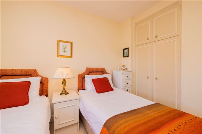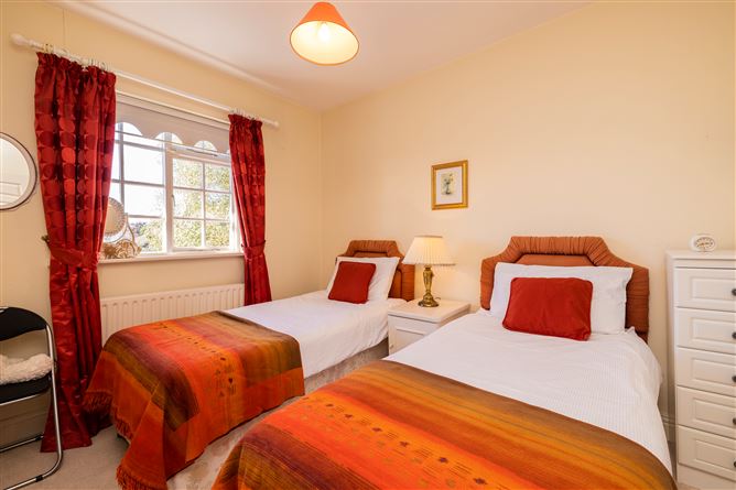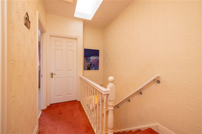 HALL With panelled front door, radiator cabinet and access to; KITCHEN 2.60m x 2.46m To the front of the house, with an array of floor and wall mounted units with extractor unit over cooking area, with tiled splash back and breakfast bar with radiator cabinet underneath. It is plumbed for a washing machine and a dishwasher. LIVING ROOM 5.03m x 4.64m Extending the width of the house this is a spacious room to the rear with an appealing bow shaped window taking full advantage of its westerly aspect. There is a coved ceiling with ornate centre rose and the open fireplace (with coal effect gas fire) provides a focal point for this comfortable room. There is access to under stairs storage as well. LOBBY With glazed door to the garden and; GUEST WC Extended part of the property with close coupled wc and whb. FIRST FLOOR LANDING Nice and bright thanks to the Velux roof light - there is access to the hot press and a hatch to the attic space. BEDROOM ONE 4.60m x 4.20m max. dims. To the front overlooking the lovely parklands, this is generous double room extending the full width of the property and has been opened up to the third bedroom with feature arch providing a dressing area with a selection of built-in wardrobes. The partition wall could be re-instated to create the third bedroom as the door from landing to this room is still in situ. BEDROOM TWO 3.97m x 2.63m max. dims. This also is a double room to the rear with built- in wardrobe. SHOWER ROOM Partially tiled, with suite comprising; shower cubicle with thermostatic shower valve, vanity style wash hand basin and close coupled wc. GARDEN The grounds to the front are communal and shared between the ten houses. There is off street parking and a concealed storage area for refuse bins. The walled rear garden (7.40m x 4.80m approx.) enjoys a wonderful sense of seclusion. There is a spacious block built shed (4.80m x 2.40m approx.) with a power supply. The garden is easily maintained with paving slabs, raised deck and raised planter beds with a selection of plants.