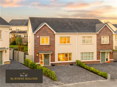 (Note: One of the images in this advertisement has been virtually staged. Where photos have been virtually staged we show the original photo beside it) A warm Byrne Malone welcome to 5 The Orchard, Sallins Road, a superb A-rated detached three bedroom that we are delighted to present to the market! The property is privately nestled on the grounds of the old walled garden of the Oldtown Estate, arguably one of Naas’ most desirable neighbourhoods since it was first built in 2018. Built and fitted to the highest standards, the quality is immediately evident on entering with a bright and welcoming hallway with wooden floor. At the end of the hallway lies a comfortable, stylish living room, featuring wooden flooring, floor-to-ceiling windows that enhance the sense of height and space, contemporary fitted bookcases, and a coal-effect electric fire that creates a cosy focal point. From here, a spacious kitchen/dining area where again quality is the hallmark throughout, with cream shaker style kitchen units, integrated appliances and subway style tiled splashback, along with durable granite counter tops and pewter fittings. Further complementing the space is a handy utility room. Double patio doors then open onto a garden that transforms into an inviting extension of the home during the warmer months, featuring a generous patio and beautiful raised flower beds. Back inside, a downstairs WC completes the ground floor with elegantly presented with white sanitary suite and pristine tiling. Moving upstairs there are 3 bedrooms that are bright and airy, all fitted with generous built-in wardrobes and decorated in neutral tones. The main bedroom has an en-suite which is neatly tiled with the highest quality fixtures and fittings. The family bathroom is neatly tiled, with white sanitary suite and ample vanity storage. The property benefits from its own off street parking and the development overall boasts ample visitor parking. Set in the leafy surrounds of the Oldtown walled gardens on the Sallins Road, you have an abundance of local amenities, transport links, and services at your fingertips. There are picturesque walks along the Grand Canal and the charming cafes, restaurants, and pubs of Naas are all closeby. For commuters, the Sallins/Naas Train Station is just minutes away, providing a convenient journey to Dublin Heuston and The M7 motorway is also in close proximity. Other amenities in short walking distance include Monread Shopping Centre, Tesco Express, Dunnes Stores and Odeon cinema. The M7 motorway is also in close proximity offering quick & easy commuting. So there you have it, a wonderful opportunity to secure a stunning A-rated family home, immaculately maintained and perfectly situated. We highly recommend viewing!
