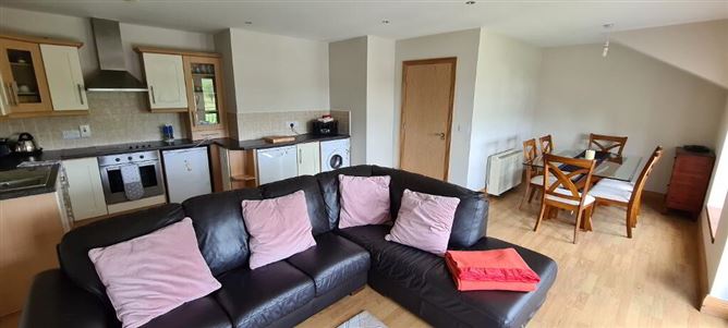Superb waterside apartment with balcony overlooking the Shannon/Erne in beautiful Leitrim Village. Presented in pristine condition is this top floor modern 2 bedroom apartment. This apartment is ready to move into and is in the heart of the village with all its amenities on the doorstep. There is a private marina on site and the Shannon/Erne Waterway passes by this development which has a balcony overlooking same. There is a small boutique hotel serving drinks and food on site and childrens playground with a separate tennis court. The apartment has easy access to all village amenities including nearby shop, pubs and various places to choose from to eat. Leitrim village also has its own National School and Childcare facility. Both Drumshanbo and Carrick on Shannon are within easy driving distance and have a host of amenities to offer both outdoor and indoor including cineplex, Aura Leisure, Choice of shops etc. Lough Key Forest Park is also nearhadn together with a range of canalside walks, water activiitie setc. The apartment is very well laid out with two large bedrooms, one with an ensuite, separate shower room, open plan kitchen dining and living room at rear opening out onto a balcony overlooking the marina and Shannon/Erne waterway. Contact Celia in REA Brady to organise a viewing of this superb apartment. Accommodation Entrance Hall 5.18m x 2.36m Entrance hallway from doorway newly carpeted. Door to apartment with laminated flooring in hallway, power points, storage cupboard for coats etc, electric heater. Kitchen/Dining/Living Area 4.90m x 4.90m Spacious open plan kitchen, living and dining area leading out to a balcony overlooking the Shannon Erne Waterway and marina. Lovely spacious area with fitted kitchen with lots of storage space, plumbed for washing machine, dishwasher, fridge, single drainer sink, electric hob and oven, tiled flooring in kitchen area. Laminated living and dining area, feature electric fireplace, doors leading to balcony, electric storage heater, power points and tv point. Dining area 3.1 x 2.6 m Bedroom 1 4.67m x 3.46m Double bedroom to front of the apartment which is very spacious, carpeted, power points, built in wardrobe. Bedroom 2 4.50m x 3.70m Exceptionally large double bedroom at front of the apartment which is bright and has a separate ensuite. Window to front, carpeted, electric heater, power points. En-Suite 1 2.47m x 1.96m Ensuite off the main bedroom which is fully tiled, whb, wc, bath with shower attachemet electri fan heater, shaver light. Bathroom 2.17m x 1.40m Bathroom with shower, whb, wc, fully tiled with eletric heater. Outside Communal grounds Hotel on site Childrens playground and tennis court in the development Marina on site