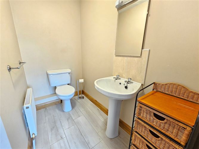 Entrance Hall - 4.85m x 2.25m Timber style quality tile flooring, carpeted polished rail stairs leading to first floor landing, double telephone point, doors leading to main reception and kitchen dining. Main Reception - 5.35m x 3.60m Walnut style timber flooring, raised electric feature fireplace with fireside wall mounted shelving units, ceiling mounted speakers with separate wall control panel, double connecting doors to formal dining. Formal Dining - 3.85m x 3.75m Walnut style timber flooring, ceiling mounted speakers with separate wall mounted control panel, double french doors leading to private rear gardens and patio (not overlooked) and door to kitchen breakfast. Kitchen Breakfast Room - 4.20m x 3.60m Solid shaker oak wall and base units with ample work surfaces, single drainer sink with mixer tap, tile splash back surround, under counter lighting, integrated fan assisted oven with four ring gas hob with extractor hood and fan, ceiling mounted speakers with separate wall mounted control panel, door to pantry and door to utility Pantry - 2.30m x 1m Quality tile flooring. Utility Room - 2.35m x 2m Quality tile flooring, space and plumbing for washing machine and dryer, ample work surfaces, glass panel door to patio and gardens and door to ground floor wc. Ground Floor WC - 2.3m x 1.35m Low level wc, wash hand basin with overhead electric shaver point and light with wall mounted mirror unit, separate wall mounted ceiling to floor storage press, First Floor Landing - 4.5m x 3.5m (L Shaped) Quality carpeted flooring, door to hot press housing immersion tank and shelving, access to additional attic storage and doors to all three bedrooms and main bathroom Bedroom One - 3.45m x 2.35m Oak style timber flooring, ceiling mounted speaker with separate wall mounted control panel. Bedroom Two - 4.55m x 3.55m Oak style timber flooring, ceiling mounted speaker with separate wall mounted control panel. Main Bathroom - 3m x 2m Low level wc, wash hand basin with overhead electric shaver point and light, panel bath with overhead shower attachment, quality wall and floor tiling. Bedroom Three Master En-Suite - 4.60m x 3.10m Oak style timber flooring, ceiling mounted speaker with separate wall mounted control panel. En-Suite - 2.45m x 2.30m Low level wc, wash hand basin with overhead electric shaver point and light with wall mounted mirror unit, shower tray with overhead electric shower with fold away glass panel shower door and quality wall and floor tiling.