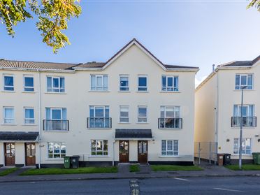 Hall 1.16 x 4.95 Wooden floor, ceiling light, fuse board. Immersion timer, double doors to living room. Door to shelved hot press with insulated immersion tank. Storage cupboard. Living room 4.80 x 3.72 Carpet, marble fire surround & hearth, ceiling light. Kitchen/breakfast room 4.61 x 3.60 Tiled floor and wooden floor, built in wall and floor units, plumbed for dish washer, plumbed for washing machine, Nordmende oven, Beko four ring electric hob, extractor fan, stainless steel sink and draining board, gas boiler, ceiling lights, French doors to rear garden, curtain pole, heating control. Bedroom 1 4.62 x 3.01 Carpet, large built in wardrobe, ceiling light. Bedroom 2 3,34 x 3.17 Wooden floor, ceiling light, curtain pole, built in wardrobe. Bathroom 3.35 x 1.64 Tiled floor and walls, bath with bath screen, Triton T90Z electric shower, w.c, pedestal sink, wooden shelf, ceiling light, access to attic space. Rear garden Spacious rear garden with south westerly aspect laid out in lawn with raised planted beds bounded by block walls with wooden garden shed and pedestrian side access. Parking Ample residents and visitor parking in the development.