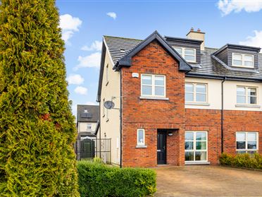 Kelly Hudson Properties proudly present this 3 bed semi detached house to the market. This property would make a great family home. It has been meticulously well maintained by its current owners and has ample bright airy and spacious living accommodation. The property comprises of an entrance hallway, a large open plan kitchen/dining and living space, and guest wc all downstairs. The large open plan kitchen/dining/living space was done in 2015 and this open plan is entirely unique to the Preston Brook estate. Upstairs is the family bathroom and three large bedrooms, the main of which is ensuite. There is access to the large rear garden via gated side entrance together with ample parking to the front of the property also. This property also benefits from a beautifully landscaped and mature park area (walled gardens) to the front offering a peaceful recreational area. The fields to the rear of the property have been zoned as farmland. It is situated close to all local amenities which include schools, church, shops, bars, takeaways, community playground and much more. The town is also home to a vibrant tennis & GAA club. The M7 is a short drive thus providing easy access to all major routes. Rathangan is also within easy reach of the popular surrounding towns of Newbridge, Naas, and Kildare Town. Viewing is recommended strictly by prior appointment with Agent only. ACCOMMODATION: Hallway: Tiled flooring, spot lights, downstairs storage, alarm point, radiator and radiator cover Kitchen/Dining: Wooden floor, light fitting, fully fitted kitchen, area fully plumbed, stainless steel sink, worktop, oven, hob, extractor fan, radiator, patio doors leading to rear garden area Guest WC: Tiled flooring, light fitting, WHB, WC Sitting Room: Wooden flooring, light fitting, radiator Landing: Carpet flooring, spot lights, hot press with shelving and storage Bathroom: Tiled floor to ceiling, bath with shower, WHB, WC Master Bedroom: Carpet flooring, light fitting, fitted wardrobe, radiator Ensuite: Tiled floor to ceiling, shower, WHB, WC, shaving light Bedroom 2: Carpet flooring, light fitting, fitted wardrobe, radiator Bedroom 3: Carpet flooring, light fitting, fitted wardrobe, radiator Features Fully alarmed Timber hall door Selected curtains and light fittings included Satellite TV Broadband/WiFi Timber double glazed windows Not overlooked from front or rear South west facing rear garden Outside light Decking area to rear Oil fired central heating Mains water Mains sewage Built in 2007 c.111.2 sqmt VIEWING IS STRICTLY BY APPOINTMENT ONLY. The above particulars are issued by Kelly Hudson Properties on the understanding that all negotiations are conducted through them. Every care is taken in preparing particulars that are issued for guidance only and the firm do not hold themselves responsible for any inaccuracies.