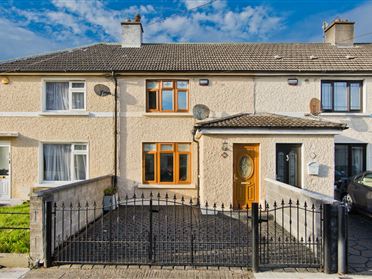 Entrance - Opening from the front door into a light and spacious open plan kitchen/dining room and stairs to the first-floor landing. Open Plan Kitchen/Dining Room - 4.51m x 4.82m Spacious open-plan kitchen/dining room with a canted bay window to the front aspect which overlooks the front garden. Fitted with matching base & wall units and all integrated appliances (fridge/freezer& dishwasher), built-in electric oven, induction hob with extractor above, sunken sink with mixer tap and finished with semi-solid wood flooring. Living Room - 4.54m x 4.05m Leading seamlessly from the open plan kitchen/dining room to a generous living room with feature fireplace with tiled hearth, sliding patio door which lead to a beautiful pergola and semi-solid wood flooring. Landing - 2.02m x 2.77m Bright and spacious landing which opens to all three sizeable bedrooms, the hot press and the family bathroom. Bedroom 1 - 2.43m x 4.33m Sizeable double bedroom with window to the rear aspect overlooking the rear garden, wall mounted radiator, built-in wardrobes and semi-solid wood flooring. Bedroom 2 - 2.24m x 3.78m Generous double bedroom with front-facing window, built-in wardrobes, wall mounted radiator and semi-solid wood flooring. Bedroom 3 - 2.01m x 3.25m Good-sized single bedroom with window to rear aspect, wall mounted radiator, built-in storage and semi-solid flooring. Bathroom - 2.15m x 1.94m Opaque window to the front aspect, WC, wash hand basin with mixer tap, walk-in double shower, electric shower and tiled floor to ceiling. Outside - The delightful south-facing rear garden is extremely private and has also benefited from a makeover in recent years. The garden itself is mainly laid to lawn with a large pergola leading from the rear of the property which provides great all rear round use. Ample off-street parking is provided to the front of the home via the large driveway.