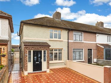 Sherry FitzGerald is delighted to present 75 Villa Park Gardens, Navan Road, to the market. This beautiful semi-detached red brick home has been meticulously maintained over the years and is ideally positioned in a quiet cul-de-sac, just a short stroll from the Phoenix Park. The front garden features a flower bed and a driveway with ample off-street parking, while the landscaped rear garden provides a private and peaceful setting for outdoor dining and relaxation. The property also benefits from a converted garage, currently arranged as a fourth bedroom, and a thoughtfully designed kitchen extension to the rear, creating a superb space for modern family living. This would make a perfect family home. This well-proportioned home offers a bright, inviting layout designed with family living in mind. The accommodation opens with a welcoming hallway featuring wooden flooring and practical under-stair storage. To the front, the main living room is a comfortable retreat with wooden flooring, a feature fireplace and recessed lighting, while the second living room also includes a fireplace, alcove storage and recessed lighting, creating a warm and relaxing atmosphere. The kitchen and dining area are laid in tile and fitted with a modern kitchen complete with integrated dishwasher, oven and hob, and fridge. A utility area just off the kitchen provides additional storage and workspace, finished with tiled flooring, a skylight, sink and the gas boiler. A convenient shower room with tiled flooring, WC, wash hand basin and shower is also located here. The converted garage now serves as a spacious fourth bedroom to the front of the home, featuring wooden flooring and built-in wardrobes. Upstairs, there are two generous double bedrooms with laminate flooring, built-in wardrobes and recessed lighting, along with a third bedroom also fitted with laminate flooring and built-in storage. A fully tiled family bathroom completes the accommodation, featuring a bath with electric shower, WC, wash hand basin, recessed lighting and a heated towel rail. Perfectly positioned in the highly sought-after Villa Park Gardens, this location offers the ideal balance of urban convenience and suburban tranquillity. Its close proximity to the city centre, along with easy access to the M50, makes it a commuter's dream. Residents enjoy a wealth of nearby amenities, including excellent schools, local shops, cafes, and a choice of public transport options. Several Dublin Bus routes serve the area, providing swift and regular access to the city centre and beyond, while Ashtown train station is within walking distance. The magnificent Phoenix Park is just moments away, offering acres of green space for leisure and recreation, while the nearby villages of Castleknock and Stoneybatter, together with Blanchardstown Shopping Centre, provide a wonderful selection of restaurants, boutiques and leisure facilities.