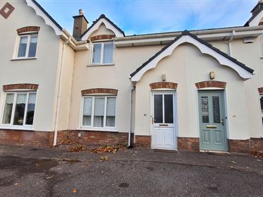 New composite front door, with glazed side panel. Entrance Hall - 17'5" x 4'10" Porcelain tiled flooring. Radiator. Living Room - 14'6" x 14'4" Beautifully decorated room featuring built-in solid fuel stove with brick and timber surround with tiled hearth , built in alcove unit, solid timber floor, coving and centre rose, bay window dressed in blinds, radiator. glazed door entry off hallway. Kitchen/Dining - 18'6" x 10'8" Bright and inviting room features porcelain tiled flooring continued through from the hallway, built in kitchen units with matching kitchen incorporates s/s sink unit, integrated dishwasher and ample storage with wood worktop. This room has the added bonus of a pantry storage cupboard off. Tiled splashback, built in extractor hood, French doors opening out to the rear patio area, radiator. Rear hallway with window and blind. Guest W.C. W.C., W.H.B, Tiled, window. Carpeted stairs to first floor: Landing - Carpeted, walk in hot press. Bedroom 1 - 11'8" x 10'6" Timber floor, blinds, extensive built in wardrobes and vanity area, radiator. Bedroom 2 - 11'11" x 8'2" Timber floor, blinds, built in wardrobes, radiator. Bedroom 3 - 9'9" x 8'4" Timber floor, blinds, radiator. Bathroom - 6'7" x 6'3" Fully tiled walls and floor, stand in electric shower, W.C., W.H.B., spot lights, radiator. Front Garden Set on a corner site with spacious front and rear gardens. Private off street parking for two cars, walled in site with pillared entrance. Gated side access to rear garden. Rear Garden South facing rear garden totally private, low maintenance, the garden is currently laid out in patio tiles, it offers two detached concrete block with garden sheds, one with ESB and is plumbed for the washing machine, security lighting, low maintenance dashed exterior.