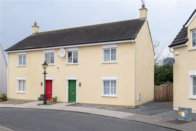 9 Mell Street is located in Kilminchy village, Portlaoise. Located on the Dublin Road just 2 minutes from Motorway, bus stop and shops. Kilminchy has all the amenities on your doorstep, with supermarket, creche, pharmacy, pub and restaurants. No:9 has been painted throughout and is bright and airy. This room is an open, bright living and dining area with a clean, modern look. The flooring features a stylish herringbone pattern in a soft gray tone, adding texture and warmth to the space. A large, brown L-shaped sofa provides comfortable seating and is arranged to face the fireplace, which has a classic wood surround and a black interior for a cozy focal point. To the left, there's a dining area situated near sliding glass doors, allowing natural light to brighten the room and providing access to the garden. The walls are painted in a neutral white, giving the room a spacious feel. Off this is a galley kitchen with grey units. Upstairs there are 3 bedrooms with the master ensuite. Along with a family bathroom. This garden features a small, well-maintained grassy area bordered by a wooden fence on three sides, providing privacy. A stone pathway runs through the center, leading toward a storage shed on the right side. The shed is painted green with a window and appears to be practical for storage or gardening tools. A simple wooden barrier at the back of the garden is surrounded by lush green trees, creating a natural, shaded backdrop. Some decorative touches, like potted plants, add a bit of color and charm to the space, making it a cozy and functional outdoor area.