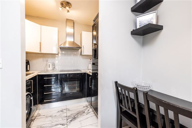 Accommodation: Entrance Hall: With wooden flooring. Storage Room: With shelving. Hotpress: With shelving. Living Room/dining area: With wooden flooring, TV point. Door to sunny balcony area. Kitchen: Kitchen area with fitted wall and floor units with tiled splashback. Stainless steel sink. Plumbed for washing machine. Master bedroom: With wooden flooring. Built-in wardrobe. En-suite: Newly renovated with white suite. Fully tiled walls and tiled floor. Bedroom 2: Double bedroom with wooden flooring and built in wardrobes. Bathroom: & wc combined. White suite. Fully tiled walls around bath, half tiled walls around whb & wc. Tiled floor.