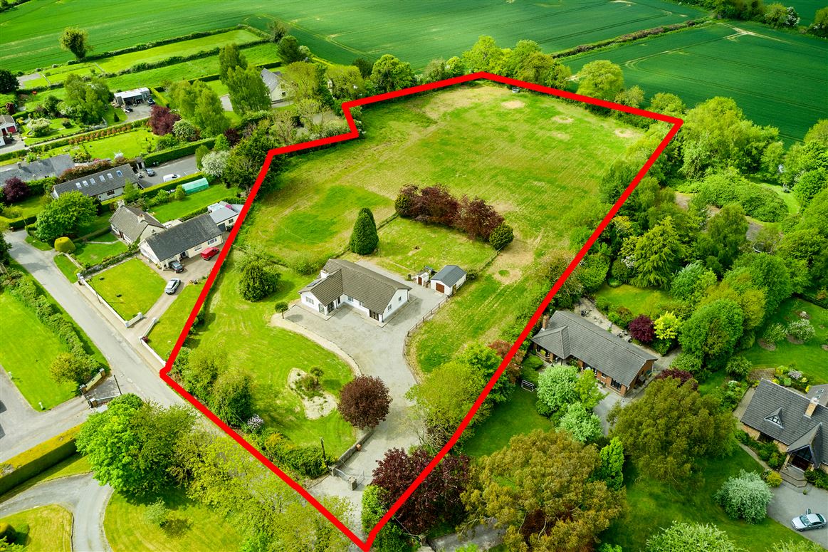 Murtagh Bros are delighted to bring this spacious 4-bedroom residence to the summer market. Set on c. 3 acres of land. The property is nicely set back from the public road with a large lawned area to the front of the residence, there is ample parking of numerous cars also. The accommodation consists briefly of entrance hall, living room, dining room, kitchen, utility room, bathroom, four- bedrooms, main ensuite and a study/home office. There is a detached garage, suitable for many uses. The grounds are mostly laid to lawn with a large field to the rear of the property witch offers endless potential to the discerning purchaser. This is a most convenient location, being only 6km from Swords, 9km from Ashbourne and less that 20km from City centre. Properties like this seldom come to market with such a generous size site in a most convenient location.