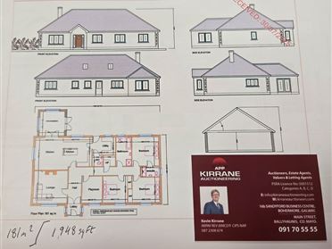 New to the Market, APP Kirrane Auctioneering are delighted to offer this splendid site with beautiful views located on the outskirts of Dunmore town. Enjoy the picturesque and peaceful location while only a short drive to golf club, scenic walks, sporting facilities, shops, schools and regular bus service to Galway City. This is the ideal location for commuting students or workers only forty minute drive to Galway City, Roscommon or Castlebar. The site offers planning permission for a detached bungalow extending to 193m2 with stone feature pouch and a detached garage consisting of 60m2. Sitting of 0.5 acre site part of folio GY83836F. This is a bespoke home awaiting the owners personal touches. Accommodation comprises of: entrance hallway with option to put staircase in to convert the attic space. Large open plan lounge, dining room, kitchen opening onto a sun room with separate utility. Guest toilet. Three double bedrooms with en-suite and walk-in wardrobe off master bedroom, play room or forth double bedroom, office or gym. Main bathroom. This is a splendid property and will make a fantastic home. For further information or to arrange viewings please make contact with the Sole Selling Agents APP Kirrane Auctioneering. Please Note: These particulars are for general information only for this property. The details contained are not to be relied upon as statements or representations of fact. Whilst every care is taken in the preparation of the property details, neither APP Kirrane Auctioneering or the vendor accept any liability for the details contained in the description of the property. The interested persons must satisfy themselves by viewing the property or employ somebody to inspect the property on their behalf. No Auctioneer or Staff Member employed by APP Kirrane Auctioneering in either; Main Street, Ballyhaunis, Co. Mayo or Bohermore, Galway has any authority to make or give any representation or warranty whatever in relation to this property.