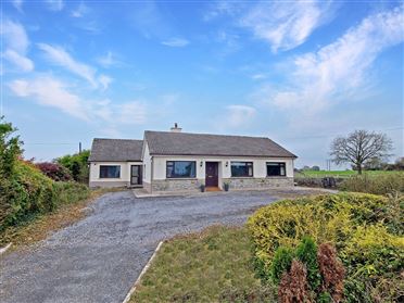 Entrance Hallway - 3.5m x 1.8m Solid timber walnut flooring, half and half wall decor (timber panelling), glass panel feature doors to main reception and kitchen dining and open arch to main hallway. Main Reception - 5.4m x 3.5m Lined oak style timber flooring, decorative ceiling coving, ceiling mounted spot lighting unit, bay window feature on to front gardens, ceiling to floor stone fire breast with solid fuel stove and polished flag and timber mantle extending to incorporate tv stand with additional storage and ample surfaces, tv point and wall mounted shelving. Kitchen Dining Room - 6.8m x 3.4m Kitchen Area - Modern built-in wall and base units with ample work surfaces, single drainer sink with mixer tap, space and plumbing for electrical appliances including integrated fan assisted oven, microwave, ceramic hob with extractor hood and fan, indentation for double door fridge freezer, tile splash back surround, recess ceiling lighting, extended counter to facilitate breakfast seating with additional base storge, eye level glass display units, quality tile flooring, door to utility and open plan to dining area.Dining Area - Quality tile flooring, brick wall feature, open arch to family room. Family Room - 4m x 3.7m T&G solid wood flooring, solid fuel stove with polished mantle, vaulted ceiling with recess ceiling lighting and exposed beam, sliding patio door leading to extensive rear garden and patio. Utility Room - 2.6m x1.6m Built-in wall and base units with ample work surfaces, space and plumbing for electrical appliances, quality tile flooring, wall mounted coat rail and door giving access to rear garden and patio. Main Hallway - 5.2m x 1m Solid walnut timber flooring, half and half wall decor (timber panelling), wall mounted lighting, stira stairs leading to additional attic storage, double doors to hot press housing immersion tank and shelving, door to cloak closet and doors to all three bedrooms. Bedroom One - 3.1m x 2.7m Quality carpeted flooring, wall mounted shelving units, built-in wardrobes with ample hanging rails with additional overhead storage incorporating vanity surface with wall mounted mirror. Bedroom Two - 3.6m x 2.9m Quality carpeted flooring, built-in wall and base units with ample work surfaces with indentation for seating. Bedroom Three Master En-Suite - 4.3m x 3.3m Lined oak style timber flooring, wall to wall and ceiling to floor built-in wardrobes with ample hanging rails with additional overhead and base storage incorporating vanity surface with overhead wall mounted mirror and door to en-suite. En-Suite - 2.7m x 0.9m Low level wc, wash hand basin with overhead wall mounted mirror unit with integrated lighting, heated wall mounted towel rail, shower tray with overhead shower and glass panel shower door and quality ceiling to floor tiling. Main Bathroom - 3.2m x 1.8m Low level wc, integrated wash hand basin with additional base storage and mixer tap, double shower tray with overhead electric shower with glass panel shower door, heated wall mounted towel rail and quality ceiling to floor tiling.