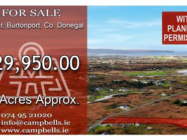 Campbells Auctioneers are pleased to bring this 5 Bedroom Home to the open market. The property is situated on an elevated site extending to approximately 0.59 acres Boasting Distant Sea Views and is located a short walk from Keadue Strand, making it an ideal choice for those seeking a coastal setting. The House features a natural stone exterior finish, giving it a distinctive appearance. Accommodation includes an open-plan fully fitted Kitchen / Dining Room, a Living Room with open fire, which leads into a large Sunroom, a long Hallway, and a Family Bathroom. There are 5 generously sized Bedrooms, one of which is En Suite. Externally, the property includes two Sheds, one large and one smaller, suitable for a variety of uses. The Location is convenient, with the villages of Burtonport and Kincasslagh, as well as the town of Dungloe, all within a short drive. Viewing is highly recommended and is by STRICT appointment only. Our Ref: K849
