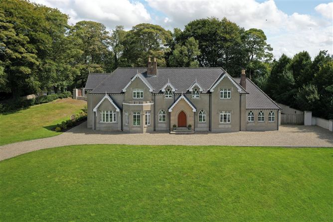 The property occupies approx.. 1.6 acres of landscaped gardens with electronic gates on entrance, sweeping stone chipped driveway and paved courtyard, all sheltered with mature trees for maximum privacy. The property has a total floor area of 398 sq m (4,300 sq ft) and is finished to the highest of standards, with much attention given to detail and design. With family in mind the open plan accommodation flows effortlessly to include 3 reception rooms, modern kitchen/dining area, cinema room, office, and 5 bedrooms, one of which is located on ground floor. There is also an adjoining double garage with gym on first floor.