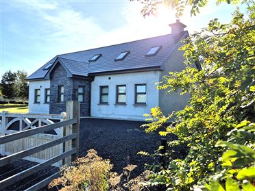 This charming, bungalow residence with pleasant countryside views, sits on the western slopes of Croagh Patrick in Culleen, Kilsallagh, circa 17km from Westport and circa 8km from Louisburgh. The property offers a generous c.131 sq.m (c.1,410 sq.ft) over one floor and is ready to move in to. Built in c.2000, the property was finished to a high standard throughout and has been well maintained over the years. Accommodation comprises entrance porch with tiled floor, which leads through to a bright entrance hallway with cherry wood flooring. The sitting is located to the left with a large window overlooking the front garden and double doors through to the sunroom with high ceiling and patio doors leading out to the deck. On a clear day, Clare Island and the Atlantic Ocean are visible to the west. The kitchen sits at the back with a fully fitted solid cherry wood kitchen and integrated appliances, off the kitchen is a utility with rear access and WC. Down the hall you will find a large family bathroom with freestanding bath, three good size bedrooms, the master with a fully tiled ensuite and slide robes fitted. Geothermal underfloor heating ensures the property always feels cosy and warm and with its B1 energy rating, provides a comfortable, energy efficient home. Externally, the property is accessed via a gated entrance, with a natural stone front boundary wall. A large lawned area runs from the front of the property to the side and around to the rear. The property is located on a quiet country road in a peaceful, tranquil setting enabling it to feel like part of the countryside without being isolated. The choice of primary and secondary schools are available in nearby Westport or Louisburgh making this a fantastic family home.