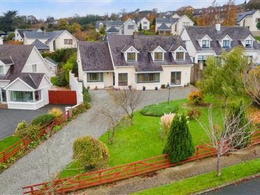 Glenealy House is a substantial country residence set on approximately 4.6 acres of beautifully landscaped grounds on the outskirts of Glenealy village, surrounded by rolling fields, mature woodland and a deep sense of privacy throughout. Approached through electric gates and a sweeping tree lined driveway, the house sits proudly within its setting, framed by manicured lawns, sculpted topiary, mature trees and long views towards the Wicklow hills. The gardens have been shaped with care and purpose, with gentle pathways, sheltered seating areas, a putting green with practice tees and a detached garden room tucked away for quieter moments. It is a wonderfully private estate, yet only minutes from Glenealy and within easy reach of Wicklow Town, Ashford and the N11 and M11 for Dublin. Built in 1999 with classic red brick elevations and a C2 energy rating, Glenealy House extends to approximately 468 square metres or 5,037 square feet of well considered accommodation that suits both family living and large scale entertaining. A gracious reception hall sets the tone with its Waterford Crystal chandelier and introduces a sequence of generous reception rooms including a dual aspect formal living room with feature fireplace and Waterford Crystal chandelier, a cosy family room, a formal dining room and a large kitchen and breakfast room overlooking the gardens. A wine cellar, utility room, guest WC and internal access to the garage complete the ground floor. A superb ground floor bedroom suite with its own entrance offers excellent flexibility for guests, multi generational living or an au pair. Upstairs, four further double bedrooms, all en suite, are arranged around a spacious landing which is also finished with a Waterford Crystal chandelier. The principal suite enjoys impressive proportions and elevated views across the gardens and surrounding countryside which reinforces the sense of a peaceful private retreat. Set in one of Wicklow's most naturally beautiful and sought after rural pockets, Glenealy House enjoys close proximity to renowned walking trails, forest tracks, riding schools and equestrian facilities, as well as the beaches and harbours of the east coast. This is a location highly regarded for its privacy, scenery and outdoor lifestyle, yet with excellent access to Dublin via the N11, M11 and M50, and Dublin Airport in approximately 50 minutes. Viewings are strictly by private appointment only.