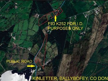 A rectangular shaped residential site contained in Folio DL2927F, extending to 0.24 HA (0.6 acres) approximately, being sold subject to planning permission. In a peaceful rural setting with views of surrounding countryside the local amenities of Ballybofey are located approx. 5 minutes' drive of the site. Enquiries welcome.