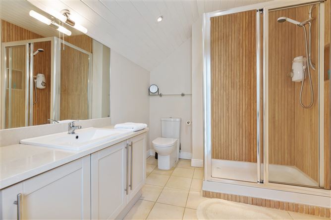 Ground Floor Entrance Hall 3.44m x 2.38m tiled flooring, sky light, storage room Utility Room/ Kitchenette: 1.80m x 1.14m tiled flooring, plumbed for washing machine, fridge freezer, range of fitted units, stainless steel sink Shower Room 1.80m x 1.38m tiled flooring, rainwater shower, w.c., w.h.b. Bedroom 3.45m x 3.14m wooden flooring, bay window Sitting Room 5.56m x 4.26m wooden flooring, wrought iron fireplace, custom designed staircase Kitchen 3.51m x 4.26m wooden flooring, floor level fitted units, stainless steel sink, top of the range gas oven, extractor fan, integrated dishwasher Dining Room 2.64m 3.64m wooden flooring, skylight Office 2.64m x 3.08m wooden flooring, door leading to rear garden Living room 4.89m x 4.78m wooden flooring, newly installed gas fire inset, marble fireplace, skylight, double doors leading to rear garden First Floor Landing 2.42m x 1.87m carpet flooring, skylight, hot press Bathroom 1.70m x 2.18m tiled flooring, tiled walls, standalone bath and shower, w.c., w.h.b. Bedroom 2 2.99m x 3.75m carpet flooring, double glazed window, fitted wardrobes Study/ Dressing Area 6.59m x 2.00m carpet flooring, fitted wardrobes, skylights Bathroom 2.85m x 2.29m tiled flooring, standalone shower, w.c., w.h.b. Bedroom 1 3.75m 4.79m carpet flooring, double glazed windows over looking the garden