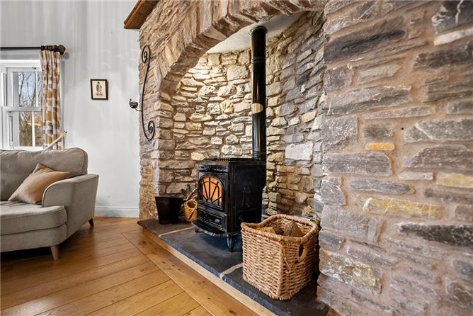 Set on a beautifully landscaped 0.59-acre site, this stunning 4 bedroom detached home has been thoughtfully updated and meticulously maintained, offering modern comfort in a serene setting. Recently enhanced by the current owners, the property now features solar panels with a 5kW battery, a bio-cycle system, an electric car charger and a soak-away drainage system, achieving an impressive B2 BER rating. Recent redecorations further elevate this bright and airy home. The inviting ground floor opens with a bright and spacious hallway that leads to a large sitting room overlooking the front garden with an incredible floor to ceiling fireplace. Adjacent to this is the thoughtfully designed kitchen and breakfast room. Both the kitchen and living room feature vaulted ceilings, creating a sense of openness and grandeur. A west-facing terrace accessed directly from the kitchen provides a perfect spot to enjoy evening sunsets. To the rear, you'll find four well-proportioned bedrooms, including one ensuite, all overlooking the southwest-facing garden. Each room is designed to maximize natural light, creating a warm and welcoming atmosphere. The property boasts an expansive front garden with plenty of off-street parking and a two-car garage currently used as a gym. The west-facing terrace and southwest-facing rear garden provide a tranquil retreat, ideal for outdoor dining, relaxation, or family gatherings. Situated in the heart of Vicarstown, this home enjoys the benefits of a close-knit community with excellent local amenities, including highly regarded schools. The property is conveniently located just 10 minutes from Blarney, 15 minutes from Ballincollig, and a little over 16km from Cork City Centre. Bright, modern, and energy-efficient, this home is perfectly suited for family living. With its spacious interiors, high-end updates, and excellent location, it offers the perfect blend of country charm and urban convenience.