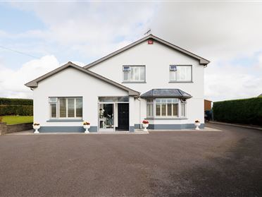 DNG Brady is delighted to bring to the market this stunning five-bedroom detached family home, offering 3900sq. ft. i.e. 363 sq. m of beautifully finished living space, set within landscaped gardens. From the moment you arrive, the attention to detail is clear from the electric gates and fully fenced boundaries to the attractive driveway leading to a detached garage and private home gym. Inside, a bright entrance hall with elegant wood panelling creates a warm first impression. The spacious interior has been thoughtfully designed for modern family living, with recessed lighting and custom-made wall inserted window shutters throughout and zoned heating for year-round comfort. The home features five generous bedrooms, perfect for growing families or guests, along with beautifully appointed bathrooms and plenty of built-in storage. Living areas are open and inviting, ideal for both family time and entertaining. Outside, the landscaped gardens provide space for everyone a large patio area for outdoor dining, a kids' play area, and peaceful green spaces to unwind. Energy efficiency and security are built in, with solar panels, a comprehensive security system, and modern zoned heating ensuring comfort and sustainability for years to come. This exceptional home offers everything a family could wish for inside and out. Accommodation comprises: Entrance Hall: large and inviting entrance hall with attractive front door, elegant wood panelling and beautiful coving. Sitting room: Bright and spacious, herringbone wood flooring, beautiful marble fireplace with solid fuel stove insert, attractive wall panelling and built in units. Kitchen/Dining room: shaker style fitted kitchen with granite counter top, 2 larder presses separate fridge & freezer, island with sink, wine cooler, integrated dishwasher and 4 storage presses, marble tiled flooring, 6 ring rangemaster cooker and fixed 8-seater table and chairs. Living-room: hardwood flooring, vaulted ceiling, build in attractive press, attractive feature fireplace with stove insert, double doors to patio area. Utility Room: Built in presses and storage room, granite counter top, plumbed for washing machine. Downstairs Bathroom: partly tiled, beautiful wall panelling, coving, tiled flooring, stand-alone bath, walk in shower. Downstairs Master bedroom: Modern and spacious with built in cabinet, walk in wardrobe with floor to ceiling fitted presses, beautiful tray ceiling and coving and hardwood flooring. Bedroom 2: Large bedroom with wood flooring, beautiful coving and built in wardrobe. Bedroom 3: Wood flooring and beautiful coving. Bedroom 4: Carpet flooring, built in wardrobe and jack and jill ensuite Bedroom 5: Carpet flooring, jack & jill ensuite, walk in wardrobe with fitted presses and rails. Location: The property is superbly located and easily accessible C. 2 km East of Balbriggan and C.15km North of Dublin City Centre. It is accessed from and fronting onto the R122 Balbriggan - Naul Road. It is C. 1 km from M1 Motorway. Directions: From Dublin take the M1 Northbound. Take exit 6 Balbriggan/Naul at the roundabout take 1st exit towards Naul. House is C. 1 km on left hand side.