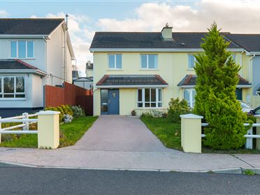 Accommodation: Ground Floor: Entrance Hall: Bright welcoming hallway with tiled flooring. Guest Toilet: W.C and wash hand basin. Tiled flooring. Sitting Room: Bright, dual aspect room with carpet flooring & fitted multi-fuel stove. Feature pine over mantle. Double pine doors to: Kitchen/ Dining Area: Large open area with fully fitted kitchen with free standing kitchen appliances, tiled splashback and recessed lighting. Kitchen and dining area tiled throughout. Large opening to: Sunroom: Wrap around bright room with vaulted ceiling, feature pine beams, velux windows and tiled flooring. French doors to rear garden. Utility Room: Fitted storage units, free-standing dishwasher & washing machine. Tiled flooring, door to side. Bedroom 3: Front aspect bedroom with carpet flooring. Bedroom 4: Front aspect bedroom with carpet flooring. Carpeted stairway to first floor: Master Bedroom: Dual aspect bedroom with varnished pine flooring & walk-in wardrobe. En-suite: W.C., wash hand basin & electric shower. Tiled flooring and shower area. Bedroom 2: Dual aspect bedroom with varnished pine flooring and walk in wardrobe. Family Bathroom: W.C., wash hand basin & bath with overhead shower attachment. Floor and bath area tiled. Velux window. Hot-press: Fully shelved. Outside: This property overlooks a large green area to the front. This is off-street parking to front and dual access leading to a large sunny, rear garden (not overlooked) laid to lawn and fully powered garden shed. Services: OFCH (boiler needs replacing), mains water and drainage. Included in sale: This home is being sold as viewed to include; all carpets, light fittings & kitchen appliances included in the sale. Garden shed also included.