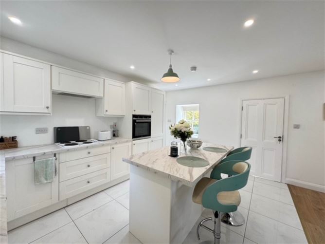 What a little slice of heaven! This extensively refurbished home comes to market in delicious presentation and condition. And that`s before we even talk about its location: hidden within the Cooley / Carlingford area, this property enjoys sea, mountain, social life and pleasant living on its doorstep: 15 minutes from the M1 motorway, Strandfield Cafe, Carlingford Brewing Co, Templetown blue flag beach. And the Cooley mountains and Dundalk are just a little beyond that, within 20 minutes` drive. Surrounded by mature trees and at the end of a tree-lined, gravel driveway, the property is as pretty as a picture with private garden surrounding, and rolling countryside with grazing sheep beyond. The only challenge here is the battle between silence, birdsong and the wind moving through the mature silver birth trees! The property itself measuring 100 sq m maintains its cottage style throughout, but with fantastic modern crisp, fresh attitude. Entrance porch leads into open plan kitchen-diner-living plenty spaced for zoning and light filled with dual aspect. Off this area is bedroom 1 lovely, comfortable with freed stand stove for winter nights, and bright with dual aspect French doors lead to a gravel patio sun trap to rear. To rear, Bed 2 a double with built in storage. A modern fully refitted bathroom is next, complete with modern free standing bath, and impressive sanitary ware and separate shower. To the back of the house, the principle dual aspect bedroom is very spacious with ensuite. The house is so gorgeous inside and out and its modern refit delivers well with a C3 rating as well as important improvement around the grounds. Which all goes to say that this house is now available and is certainly ready to impress!