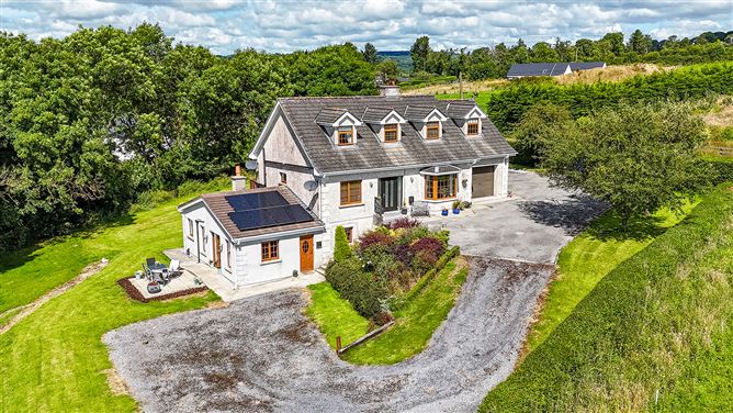 Living Accomodation: Ground Floor Entrance hallway: 1.83m. x 5.48m. wood flooring, carpet to stairs, light fitting x 2, beading to wall Living Room: 4.72m. x 4.37m. carpet, feature fireplace with Stanley oil stove, wood fireplace, coving to ceiling, wall lights Bedroom 1: 3.14m x 3.33m. laminate wood flooring, blinds, curtain pole Bedroom 2: 3.13m. x 3.63m. carpet, curtains, curtain rail, light fitting Ensuite: 1.63m. x 3.11m. fully tiled with ceramic floor and wall tiles, wash hand basin with vanity unit, electric mirror, W.c, heated towel rail Kitchen/Dining area: 6.66m. x 3.53m. floor tiles, blinds x 2, light fittings, fitted kitchen and worktops, tiled splashback, Bosch oven, Rayburn cooker, fridge/freezer, Bosch integrated dishwasher Utility: 3.61m. x 2.29m. fitted units and worktops, floor tiles, coving to ceiling, light fitting, door to rear garden. Adjoining Garage: 4.70m. x 3.62m. concrete floor, roller shutter door, light fitting, power supply. First Floor Landing: 6.65m. x 1.47m. Carpet, recessed lighting, light fitting, Velux window, access to attic space Bedroom 3: 4.24m. x 3.57m. laminate wood flooring, fitted wardrobes x 2, vanity unit, blinds, curtain pole, light fitting Bedroom 4: 3.41m. x 2.86m. laminate wood flooring, fitted wardrobes and shelving unit, blinds, access to attic Bathroom: 1.98m. x 3.51m. vinyl flooring, wash hand basin, W.c, electric mirror, inbuilt cabinet, corner bath, wall tiles, hot press off, light fitting, blinds Bedroom 5: 3.14m. x 4.50m. beige carpet, blinds, curtain pole, curtains, light fitting, fitted wardrobes Apartment Kitchen area: 3.30m. x 3.12m. ceramic floor tiles, tiled splashback, fitted kitchen units and worktops, light fitting, blinds, Normende double oven and gas hob, Bosch washing machine, Powerpoint undercounter fridge Living Room: 4.45m. x 5.80m. grey carpet, double doors out to patio, blinds, curtain pole, curtains, Stanley stove (coal and sticks), wall light, centre light fitting, oil central heating Bedroom: 4.58m. x 3.14m. cream carpet, light fitting, freestanding wardrobe, curtain pole, curtains Ensuite: 4.43m. x 2.10m. ceramic floor and wall tiles, Triton AS2000 XT shower, curtain pole, shower curtain, curtains, blinds, W.c, wash hand basin, glass shelf, electric mirror, hot press, light fitting, access to attic Services: Oil fired central heating, septic tank, well water and ESB supply These particulars and photographs are for guidance purposes only and do not form part of any contract. Whilst care has been taken in their preparation we do not hold ourselves responsible for any inaccuracies. They are based on the understanding that all negotiations will be conducted through this firm.