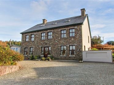 Slinneadóir is a superb 4 bedroom bungalow residence, with detached eco heated indoor swimming pool, gym, sauna, orangery greenhouse and store set on 1 acre approximately of landscaped gardens. The property commands a spectacular elevated position with panoramic coastal views that encompass Bantry Bay, Whiddy Island and the Sheep's Head Peninsula. The residence and swimming pool complex benefit from 323.3 sq. m. (3,480 sq. ft.) approximately of space. The house is carefully crafted into a home of unique character, benefitting from exceptional coastal views and enjoys a superb location close to the picturesque West Cork village of Glengarriff. The accommodation includes entrance hallway, kitchen/dining room, living room, laundry room, a generous master suite with walk-in-wardrobe and bathroom. There are 3 further spacious double bedrooms and a guest bathroom. The front rooms benefit from large picture windows, taking in the stunning coastal views The swimming pool complex comprises a 10 metre indoor pool heated by a solar eco system, accompanied by a gym and snooker area, sauna and shower room. Upstairs, there is ample storage in the attic space. The property is accessed via electric gates from the main road. The buildings sit on a generous 1 acre site approx. of magnificently landscaped grounds and paved patio areas. The site is adorned with mature specimen trees and shrubs. The orangery greenhouse and various fruit and vegetable areas add to the ambience of this fine property. Slinneadóir has its own water supply and is fitted with oil-fired central heating and solar PV panels. The property is convenient to Glengarriff, whilst the market town of Bantry is a 15 minute drive. Cork and its airport are both easily accessible in just over an hour's drive. Glengarriff is a popular residential and holiday village that is renowned for its natural beauty, magnificent Harbour at the head of Bantry Bay, ancient woodlands with walks and trails and the magnificent Caha Mountains. The towns of Bantry, Castletownbere and Kenmare are all within a 30 minute drive.