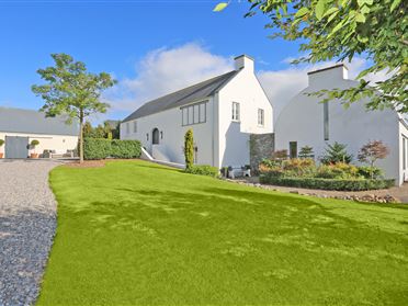 Behind a very impressive, gated entrance lies a deceptively spacious home which spans over 550 square meters of tastefully refurbished accommodation. The property is laid out over three floors and offers the perfect mix of accommodation suitable for busy family life and entertainment on a grand scale. The gardens offer over half an acre of private grounds which enjoy scenic views over surrounding countryside. St Rita's was purchased in 2009 and has undergone significant refurbishment in recent years. Now boasting an impressive B2 Ber rating. Fitted with an air to water heat pump, underfloor heating throughout, a heat recovery system and solar panels. Double glazed windows, central music system, central vacuum system all add to the high standard of finish you will experience in this fine home. The property is entered through a very impressive hallway with tiled flooring and feature mood lighting; this opens into the living room with stove and dual aspect windows. The large family sitting room has double doors to the back gardens and a fully fitted home bar with draught installation ready to go! The formal dining room has a vaulted ceiling and tiled flooring, and this opens into a fully fitted kitchen/breakfast area featuring sleek handleless white units, built in Bosch oven and hob, American fridge freezer and breakfast bar. The marble counter tops, and splashback complete the feeling of high-end luxury to the kitchen. There are three large double bedrooms, two with ensuite shower rooms also at ground floor level, one of which has a large fully fitted walk in dressing room and double doors to back garden. A family bathroom and guest wc off the kitchen completes the accommodation on this floor. At first floor level there is a large master suite with dressing room and ensuite bathroom fitted with marble tiling and jacuzzi bath and Jets steam room (fittings for tv in same) with Cedar wood wall tiles and marble tiled flooring. Master bedroom upstairs also has a fitted wine fridge and built in ironing board with two separate rooms for the possibility of his and hers walk in wardrobes. Two further rooms can be used as further bedrooms or TV room, games room or office according to individual needs. Both of these have ensuites. Ample under eaves storage is available at this level. A beautiful bespoke glass and walnut staircase has been newly fitted as well as luxurious neutral carpets added to the exceptional standard at each floor. The basement level of the property comprises an office/storeroom , ensuite, utility room, boiler room and large double garage. It has a separate entrance and would be ideal for self-contained granny flat or similar. St Rita's is situated 1 kilometre from the village of Ballyneety. The Golf club with its popular restaurant is within a 5-minute walk of the house. Knockea National School is a 3-minute drive from the property and South Liberties GAA club is also a short drive. The property is ideally positioned to enjoy peaceful surroundings in the most convenient of locations. Ballyneety Village is home to local shops and pubs in addition to the highly regarded Ballyneety Golf Club, an eighteen-hole golf course set amongst beautiful surroundings with a state of the art of driving range and clubhouse. Limerick City is short 10-minute drive offering a great selection of secondary schools, shops, restaurants, and popular cafes. Access to the motorway is just a short drive connecting you to Shannon Airport, Dublin, Cork, Galway and further afield. Accommodation: Hall, living room, sitting room/ bar, dining/kitchen/breakfast room, 5/6 bedrooms, 5 ensuite, 2 dressing rooms, family bathroom, guest w.c., office, games room, garage. Services : Air to water heat pump, solar panels, central fire alarm system, electric gates with automated fob and phone-controlled entry, outside lighting on driveway gates and pillars internal safe and central vacuum system. Each individual room has digital heat control thermostat and there is a two-unit heat recovery system Outdoor pizza oven and BBQ area. BER B2 Floor area: 5651 square feet/ 525 square meters approx.